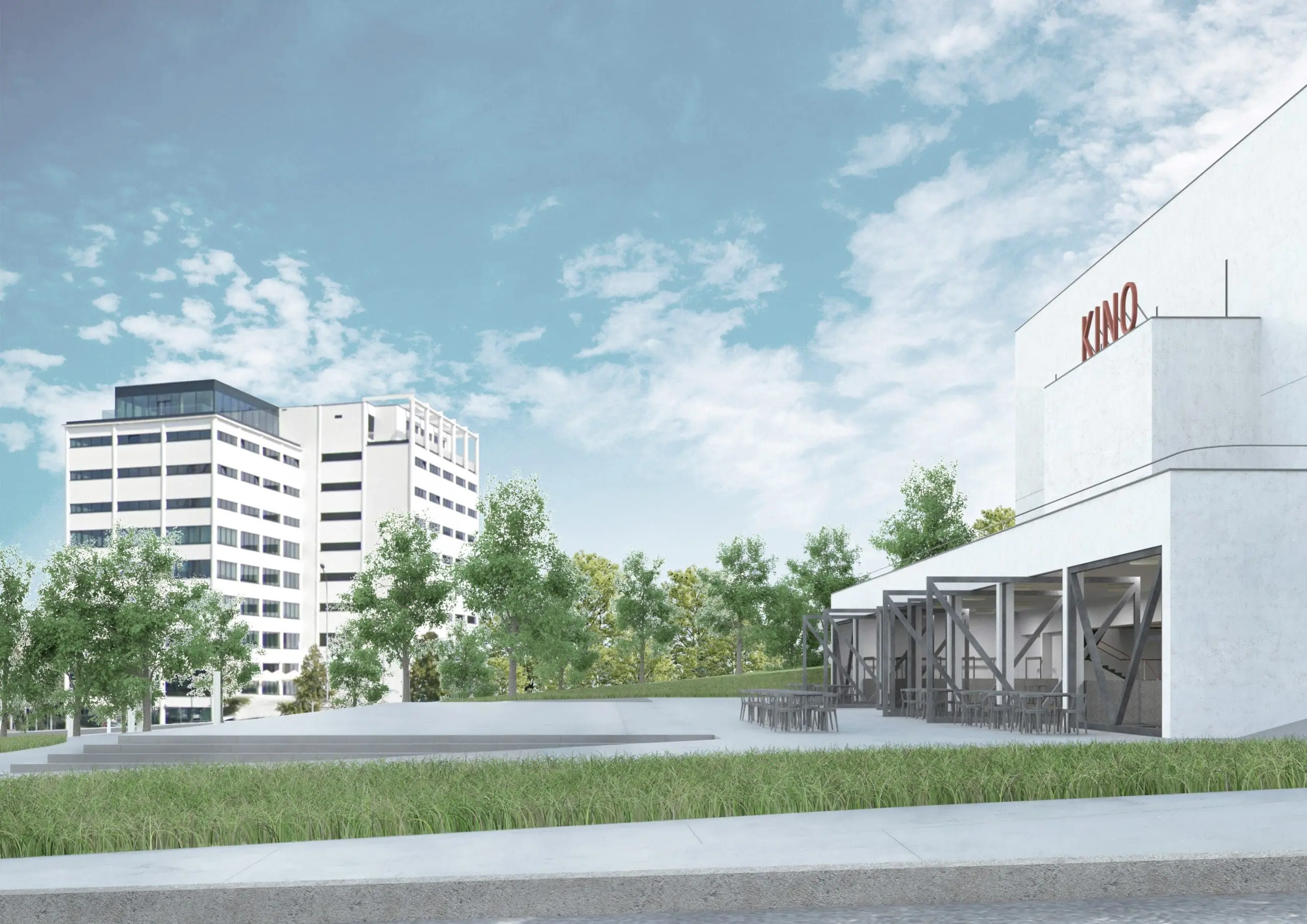 Architekti se rozhodli navázat na původní podobu Velkého kina z 30. let. Budova tak získá tvar jednoduchého kvádru s nižším kvádrem foyer a menším objemem vstupu na terasu ve 2. NP. Tento detail připomíná původní čelní výklenek, kde byl umístěn reproduktor pro ozvučení kina. Fasáda bude mít bílou omítku, která podtrhne čistotu a jednoduchost architektury.