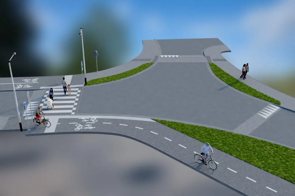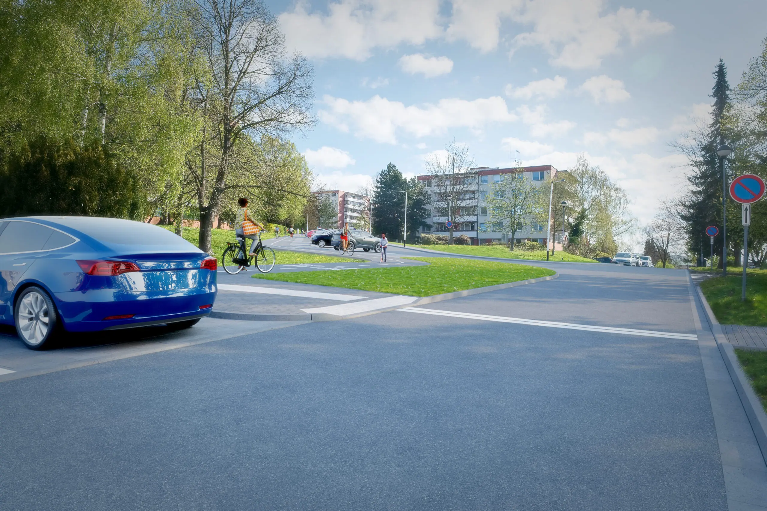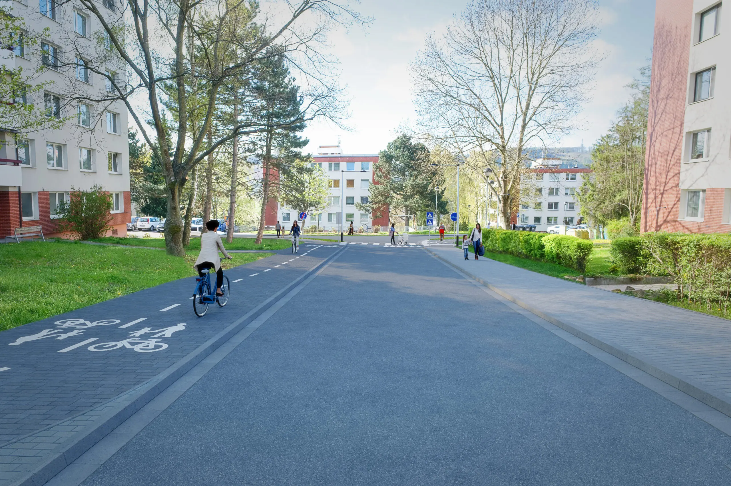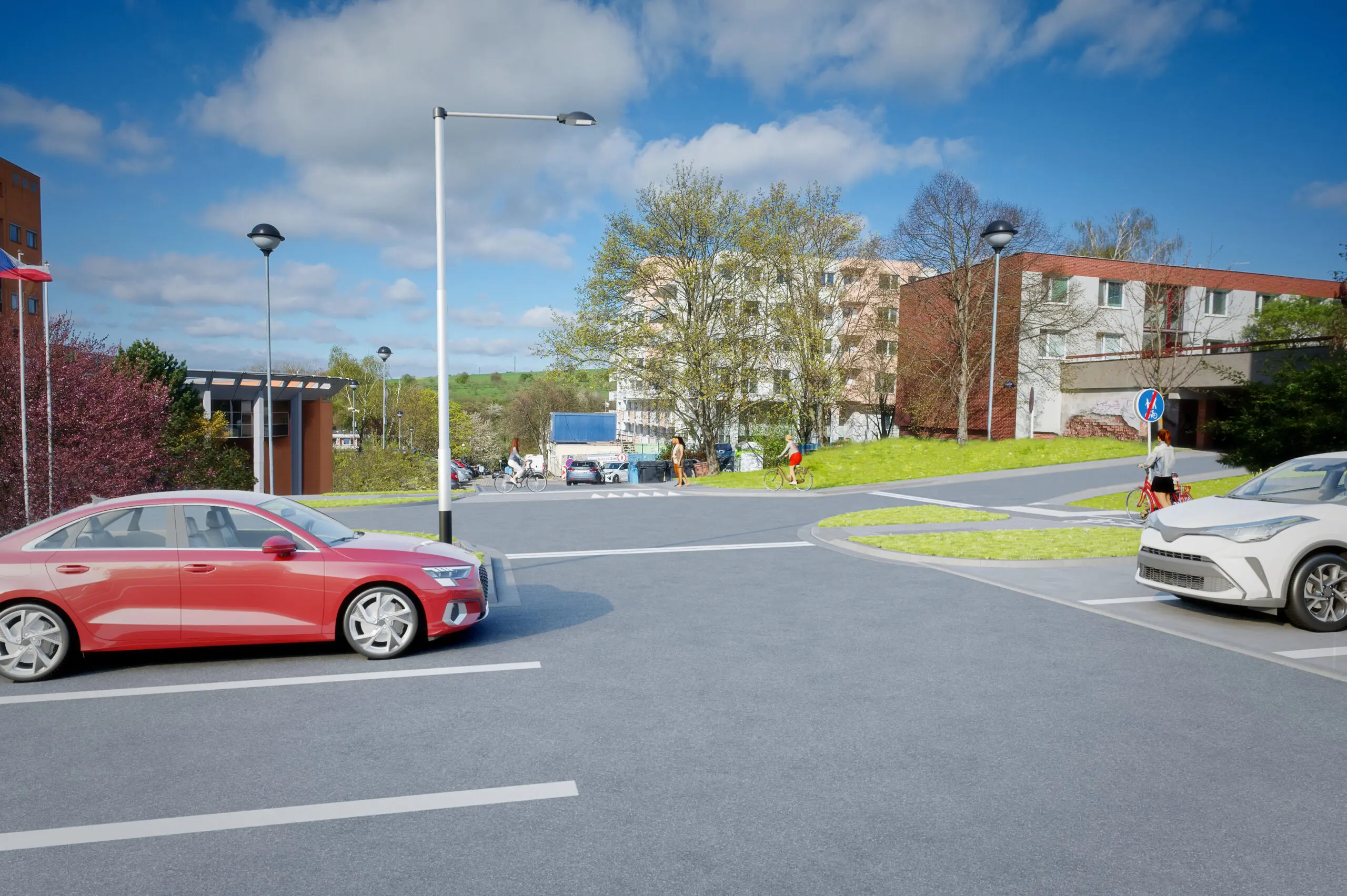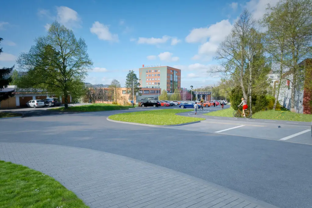 Součástí akce je také vybudování vyvýšeného přechodu pro chodce i cyklisty a zvýšených křižovatek, které zvýší bezpečnost provozu. Předmětem projektu je vybudování obousměrné stezky pro chodce a cyklisty se společným provozem v délce cca 260 m a šířce 3,0–3,5 m, vč. zřízení vyvýšené křižovatky s přechodem pro chodce a místy pro přecházení. Současně bude provedena rekonstrukce stávající pozemní komunikace, výstavba cca 41 ks parkovacích stání na ploše cca 680 m2. Podél komunikací pro pěší a cyklisty bude osazen nový městský mobiliář (cyklostojany) a vybudováno nové odvodnění zpevněných ploch a veřejné osvětlení. Dále budou jako vyvolaná investice provedeny přeložky a zabezpečení stávajících inženýrských sítí (vodovod, teplovod, kanalizace, sdělovací vedení, kabelové vedení NN) a provedeny sadové úpravy dotčené lokality. Projekt obsahuje velký podíl neuznatelných nákladů – jedná se o rekonstrukci stávající pozemní komunikace a výstavba cca 41 ks parkovacích stání.