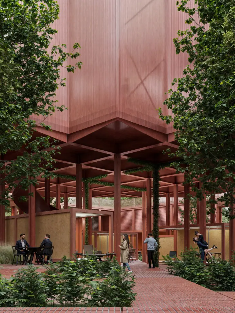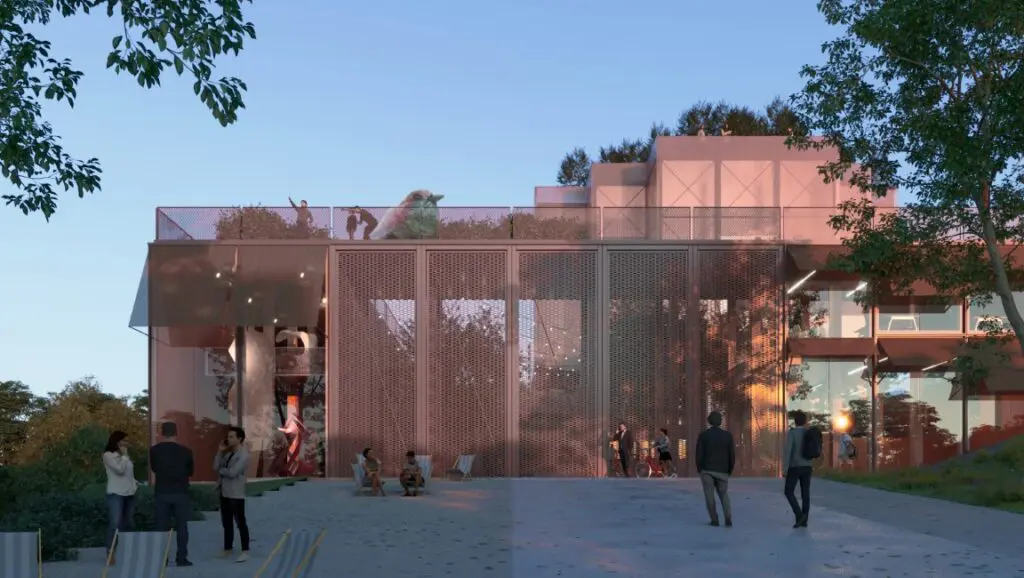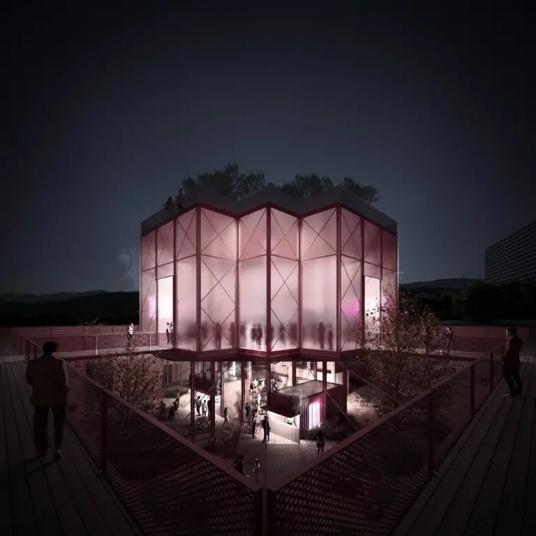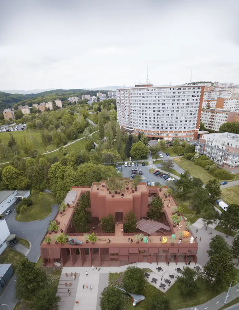 Na projektu spolupracuje KOMA MODULAR s architektonickou kanceláří Chybík+Krištof. Společně připravili návrh hybridní modulární budovy, která má být přívětivá k okolí a otevřená lidem. Dominantou se stane průchozí atrium s centrálním lampionem, jenž bude symbolickým srdcem celého objektu.